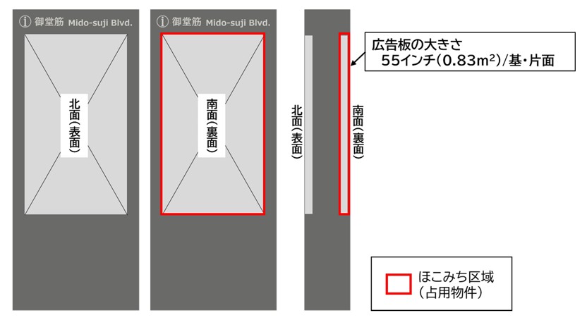 この広告協賛は、国道25号(通称:御堂筋)に設ける歩行者利便増進施設等に係る公募占用指針(難波エリア、心斎橋エリア)について、大阪市による公募占用が実施された結果、当会が代表を務めるJVによる歩行者利便増進計画が認定されたことを受けて、当会が運用を担うこととなったものです。